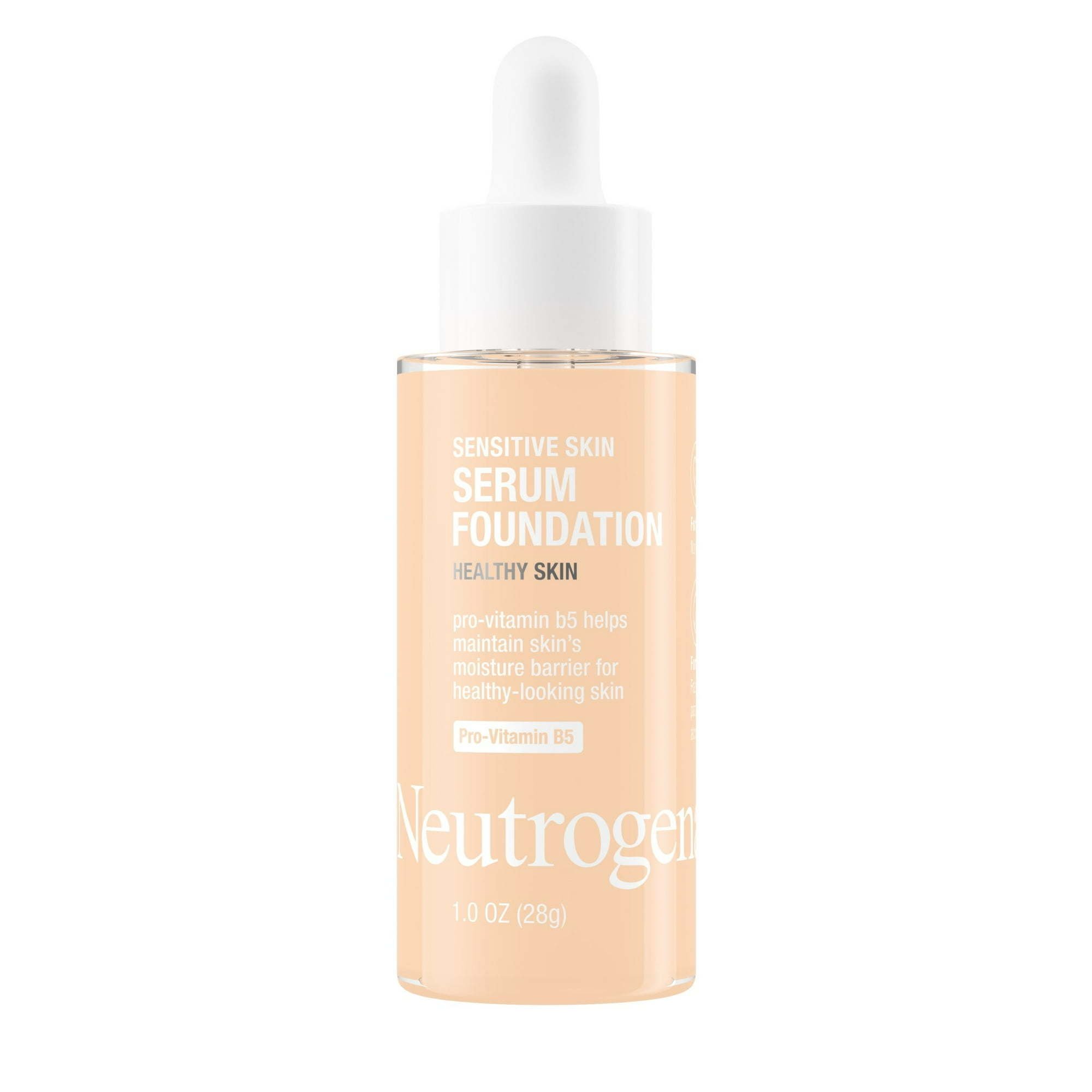 Improve the look of skin with Neutrogena Healthy Skin Sensitive Skin Serum Foundation. Suitable for sensitive skin, this serum-infused foundation doubles as skincare and makeup that provides sheer, natural, and buildable coverage while blurring imperfections, the look of pores, and designed to minimize the look of fine lines. Formulated with Pro-Vitamin B5, a dermatologist-recognized ingredient known to help maintain skin's moisture barrier, the color-correcting, healthy glow liquid foundation goes on smoothly leaving skin soothed while visibly reducing redness. Available in a range of natural-looking shades, the light coverage foundation from a dermatologist-recommended brand is non-comedogenic and fragrance-free, dye-free, paraben-free, phthalate-free, alcohol-free, and sulfate-free. To use foundation to reduce the look of pores, gently shake the bottle, then use clean fingers, sponge, or foundation brush to apply makeup as part of your daily skincare and beauty routine.